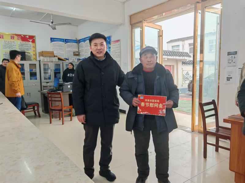 新春佳节来临之际,市医保局党组书记、局长方鹏凯带队赴对口帮扶的寿县茶庵镇碾桥村,开展走访慰问活动,向困难群众和驻村乡村振兴工作队员致以新春祝福,送上慰问金及医保政策宣传手册等物资。相关科室负责人陪同。
